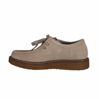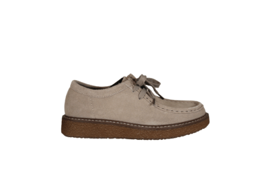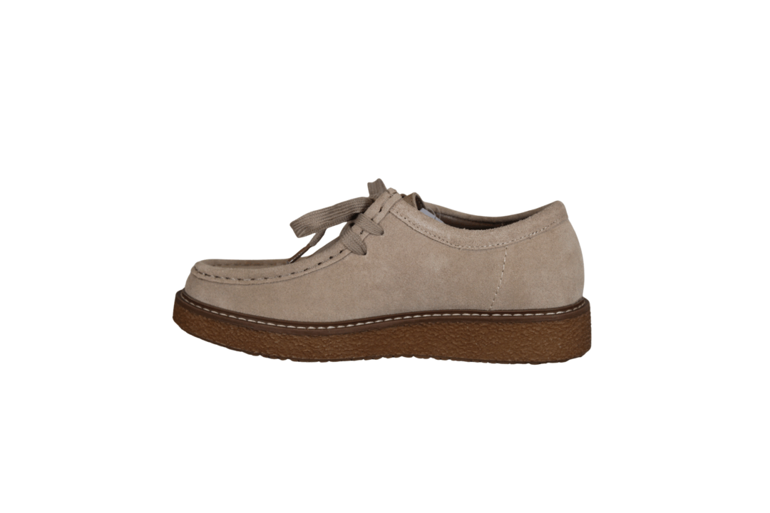 5TH AVENUE 2542-22 SAND (245-0983). Sandfarvet smart sneakers med moccasin syning rundt i snuden. Skoen er lavet i skind udvendig, og foret med vegansk materiale indvendig. Sålen er lavet i gummi. Rundt i sålen er der smart detalje med hvid syning ned i sålen.