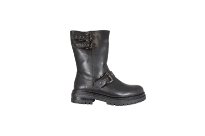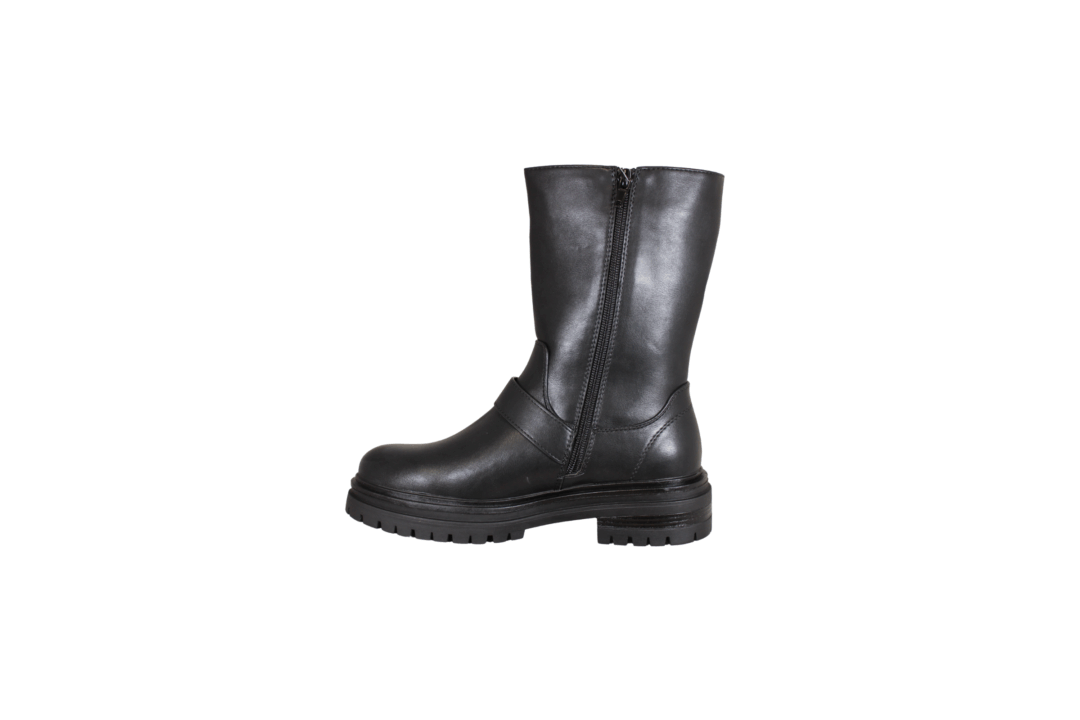 5TH AVENUE 2851-22 SORT (524-2991). Vegansk støvle fra 5TH AVENUE med 3 spænder på ydersiden. Støvlen giver et råt look. På indvendig side er der en lynlås. Skaftlængden er 3/4 længde.