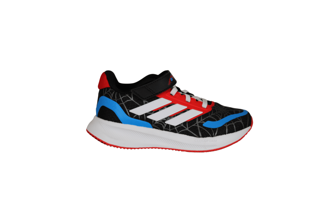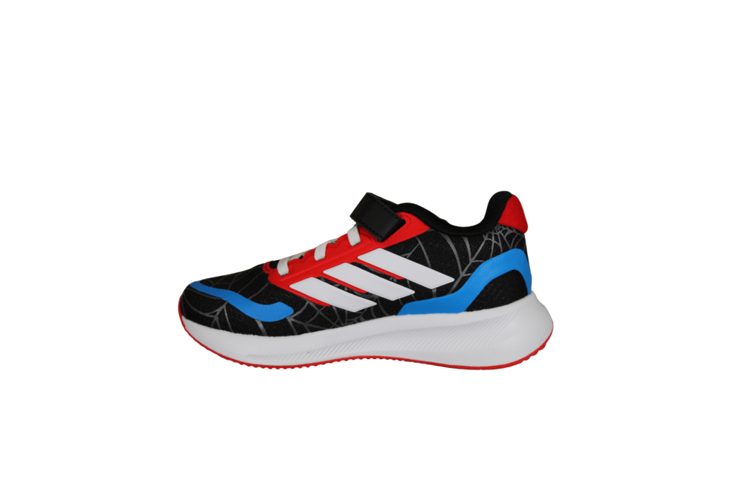 ADIDAS JR5660 RUNFALCON SPIDER-MAN EL (741-3627). Let og fleksibel kondisko til spiderman fan. Skoen har en lækker blød sål. Materialet er tekstil både ind- og udvendig. Rundt på skoen er der spiderman tema, samt 3 hvide striber på ydersiden. Hen over vristen kan skoen justeres med velcrobånd.