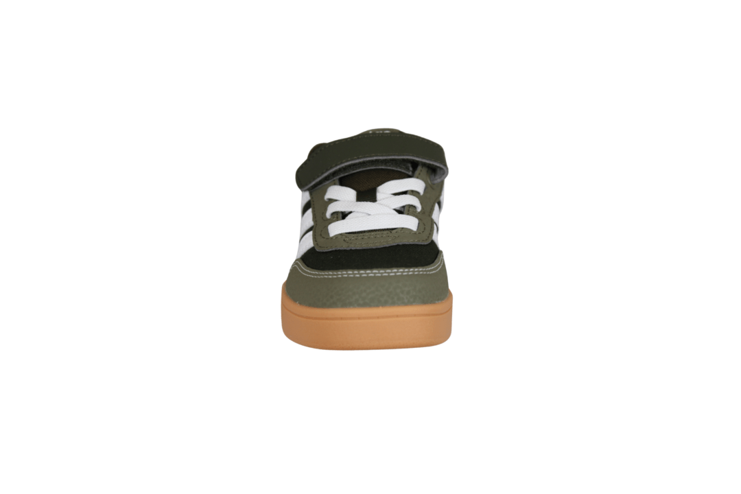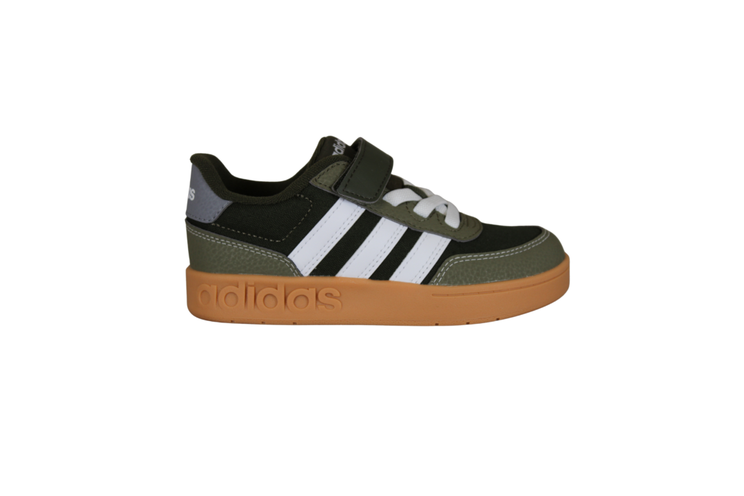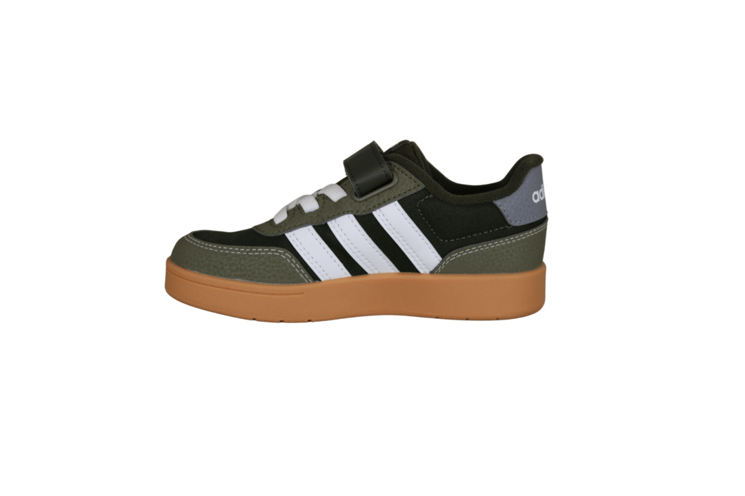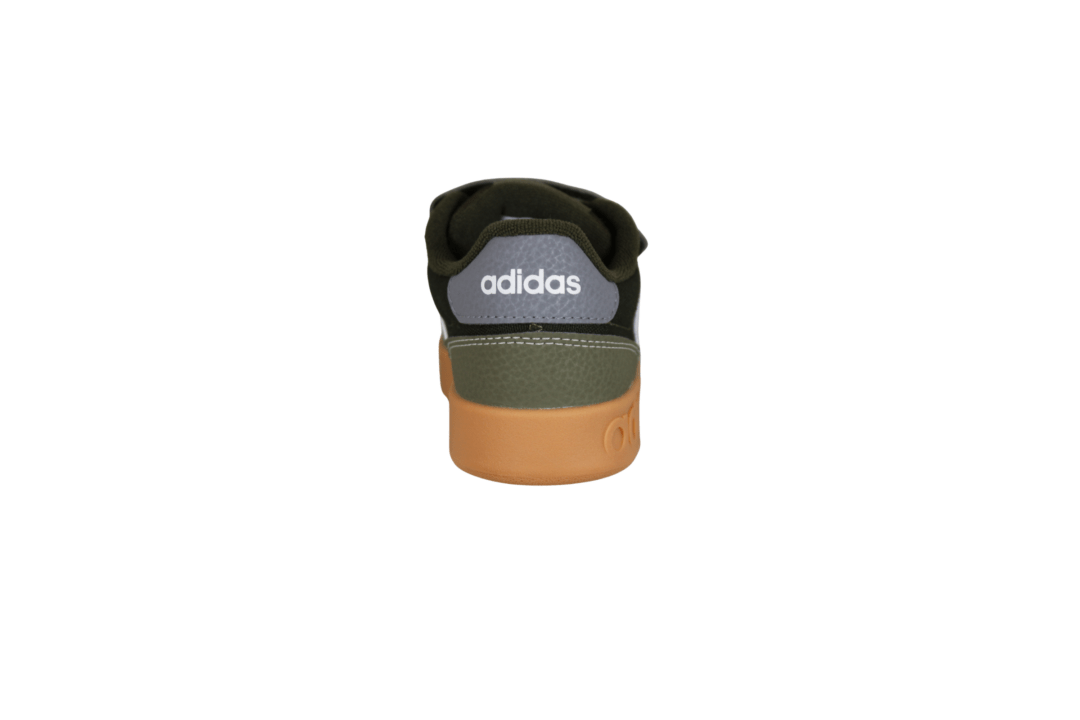 ADIDAS JR9780 BREAKBASE C (741-3630). Mørkegrøn sneakers til unge drenge med smart gummi sål. Skoen er lavet i vegansk og tekstil materiale udvendig, og er tekstil indvendig. Nem for barnet selv at tage på med velcrobåndet.
