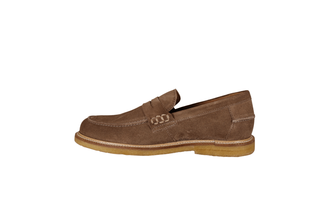ANGULUS 1612-403-4638 DESERT (241-1891). Flot sart brun (desert) loafers i skind og med en rågummisål. Indersålerne er i skind og polstret, så skoene er bløde at gå med. Ligeledes foret er i skind, så man ånder bedre i skoen. En rigtig god sko til daglig brug eller til pænere brug.
