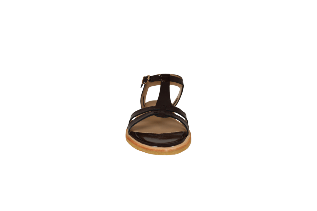 ANGULUS 5415-112-2368 BERRY (421-1725). Let berry ( mørke bordo ) sandal med tynde remme ved forfod, og lodret op af foden. Rundt om anklen er en tynd rem, der kan spændes med en spænde. Sålen er lys rågummi – lækker blød at gå på. Materialet er skind både ind- og udvendig. En god sandal til daglig brug eller til festerne.