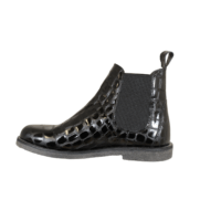 ANGULUS 7068-102-8498 BLACK CROCO (524-2890). Flot sort kroko skind chelsea støvle, med elastik i hver side, så den er nem at komme i og af. Inder sålerne er polstret og yder sålerne er med rågummi, så støvlen er god blød at gå med. Modellen er med god plads i, så den rummer godt. God til daglig brug eller til festerne.