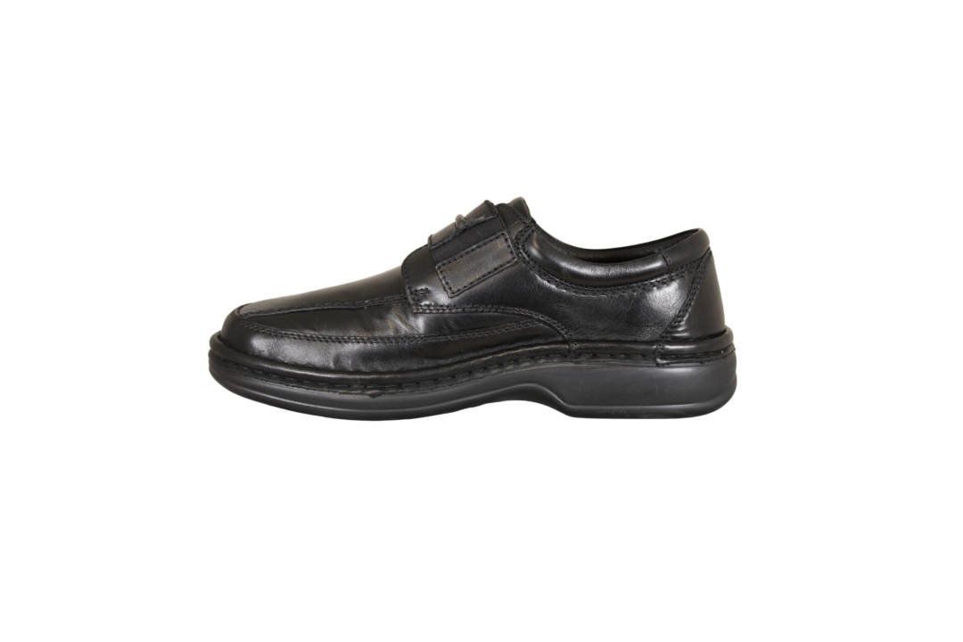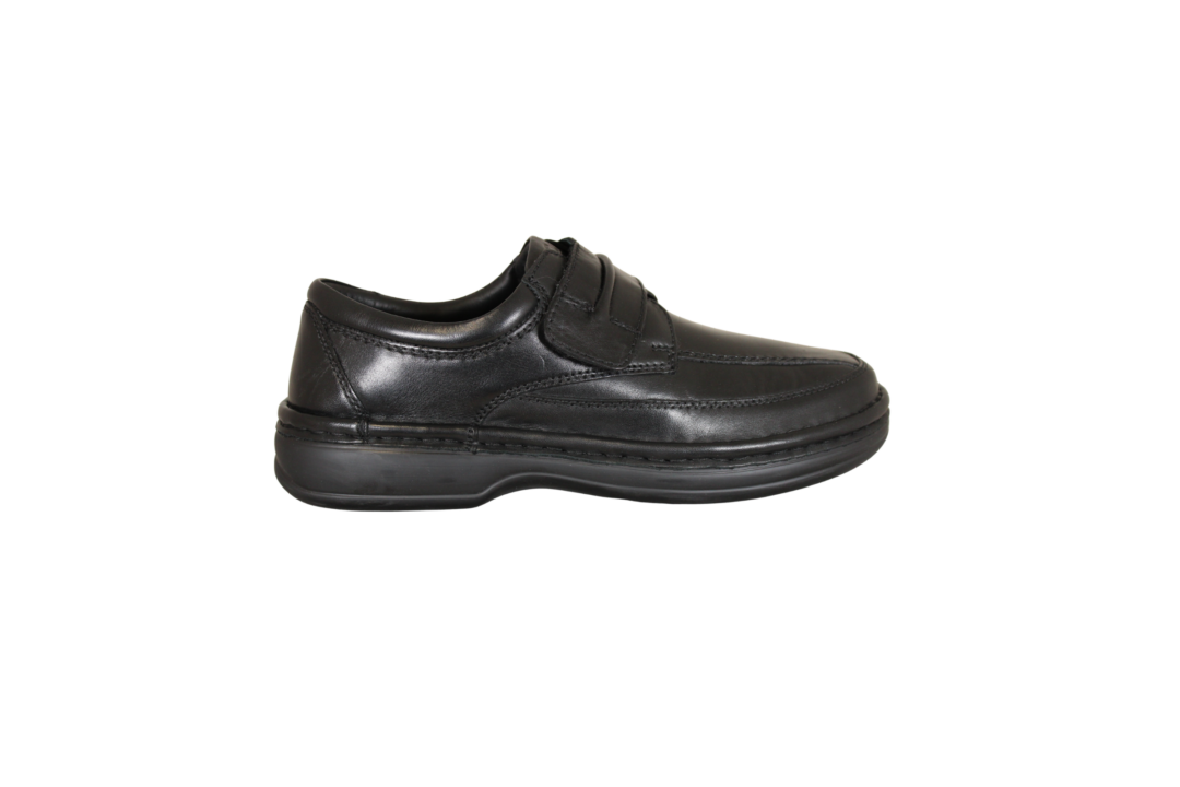 ARA 11-17101-01 BEN SORT (121-145). Sort klassisk herre sko med bred velcrobånd hen over vristen. Skoen er lavet i skind både ind- og udvendig. Ydersålen er lavet i gummi. Indvendig sål kan tages ud af skoen, hvis man har behov for sin egen sål.