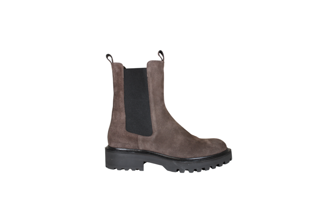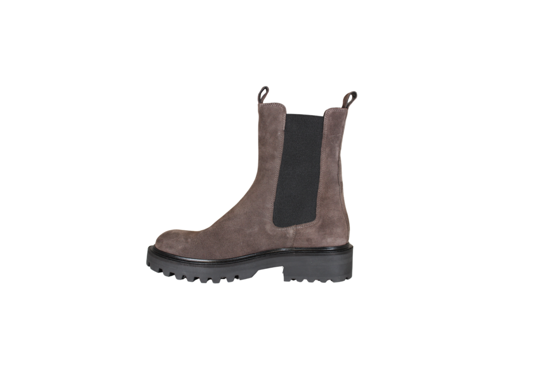 BILLI BI A6751-553 BABYSILK IMAN (Nr. 053-522). Taupe (brun/grå) klassisk støvle med chunky sål. Hælen er 5 cm, og ude ved forfoden er den 2 cm. Chelsea boot støvle der sidder til rundt om benet. Støvlen er skind både ind- og udvendig, hvilket giver en god åndbarhed og blødhed til foden. En flot støvle til daglig brug eller til pænere.