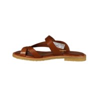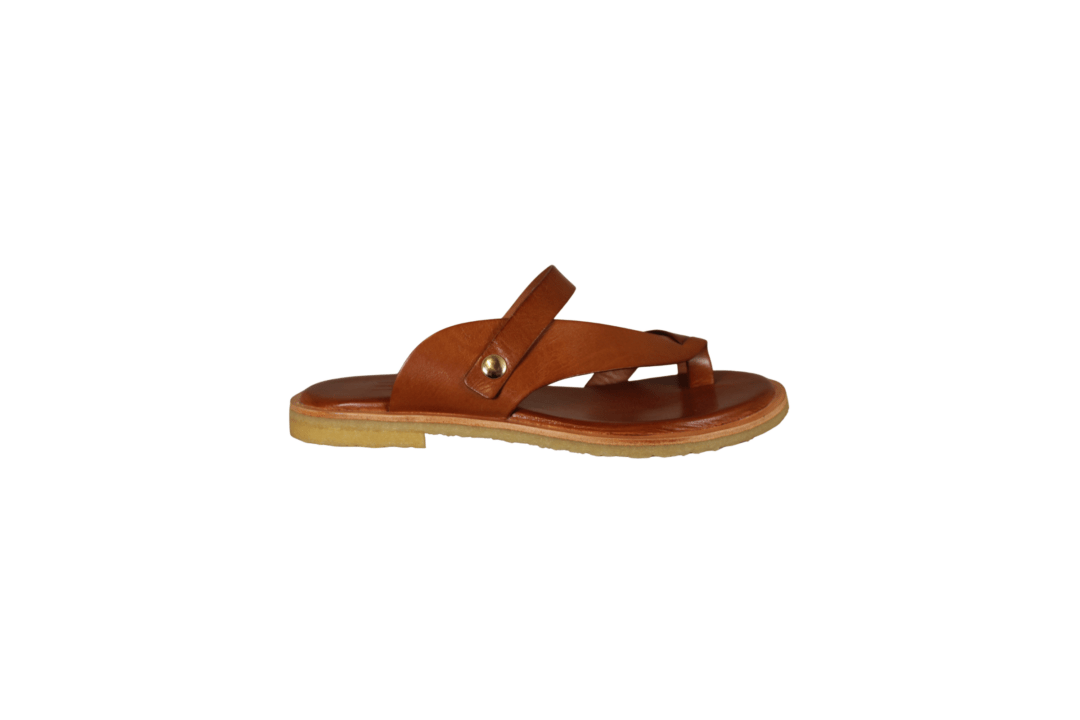 BILLI BI T7002-085 COGNAC CALF (442-1702). Håndlavet slip-in sandal i cognac farvet glat skind. Sandalen har stropper der krydser henover hinanden foran og om storetåen. Derudover har sandalen en rågummisål som har et godt greb i jorden og dejlig blød at gå på.