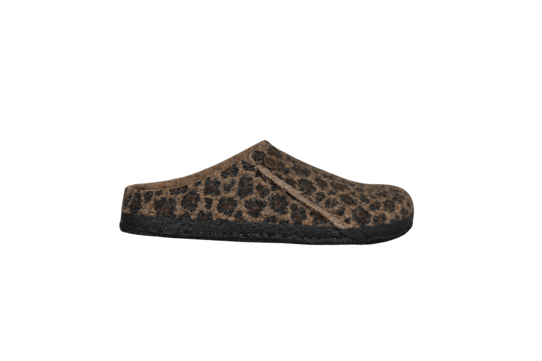 BIRKENSTOCK ZERMATT RIVET 1030844 LEO TOFFEE MELANGE (057-755). Birkenstock hjemmesko med smart leopart print. Skoen er foret indvendig med dejlig blød lammeskinds dæksål, der altid vil holde dine fødder varme. Fodformen er den smalle vidde, der stadig har den ergonomiske opbygning. Under sålen er der et lag latex.