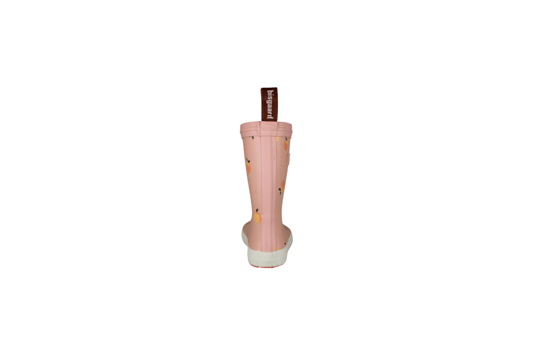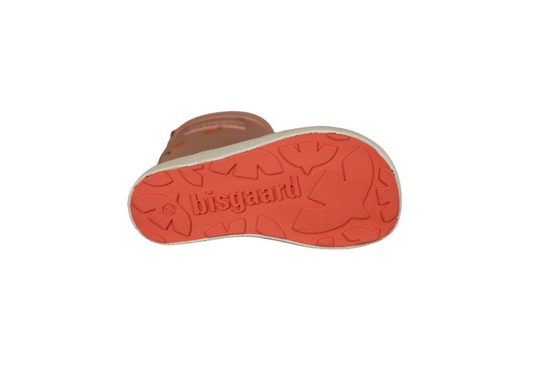 BISGAARD 92022 BAREFOOT HIGH RUBBER 5058 PEACH POP (841-0320). Højtskaftet gummistøvle fra BISGAARD i naturgummi. Printet er rosa med fersken rundt på støvlen. Støvlen har BAREFOOT sålen, hvilket giver en god form for foden, god plads til tæerne og dejlig bøjelig sål.
