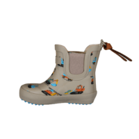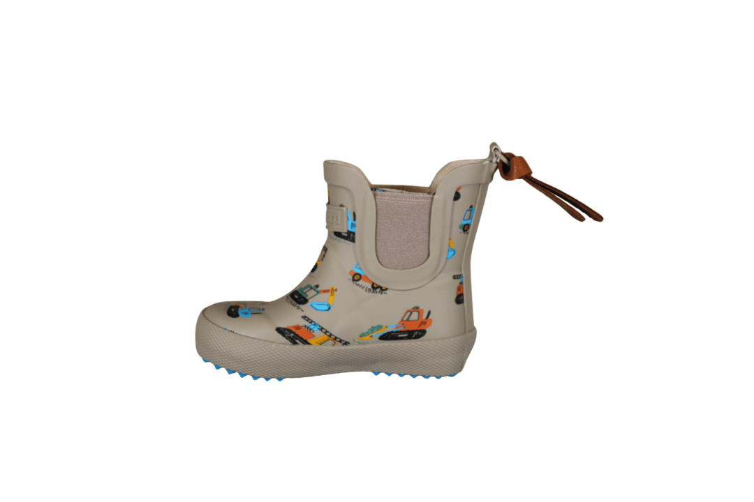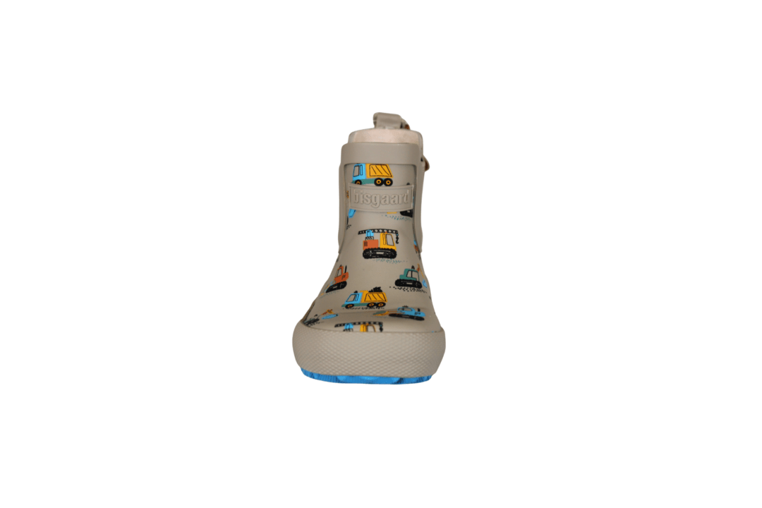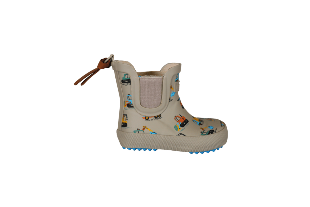 BISGAARD BABY RUBBER 92010 5050 BUILDER (841-0321). Kort skaftet gummistøvle til de små fødder. Støvlen er lavet i natur gummi. Støvlen er i lys brun med maskiner og gravmaskiner rundt på støvlen. Ydersålen er den normalle gode pasform BISGAARD har. I hælen sidder en tekstil rem.