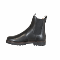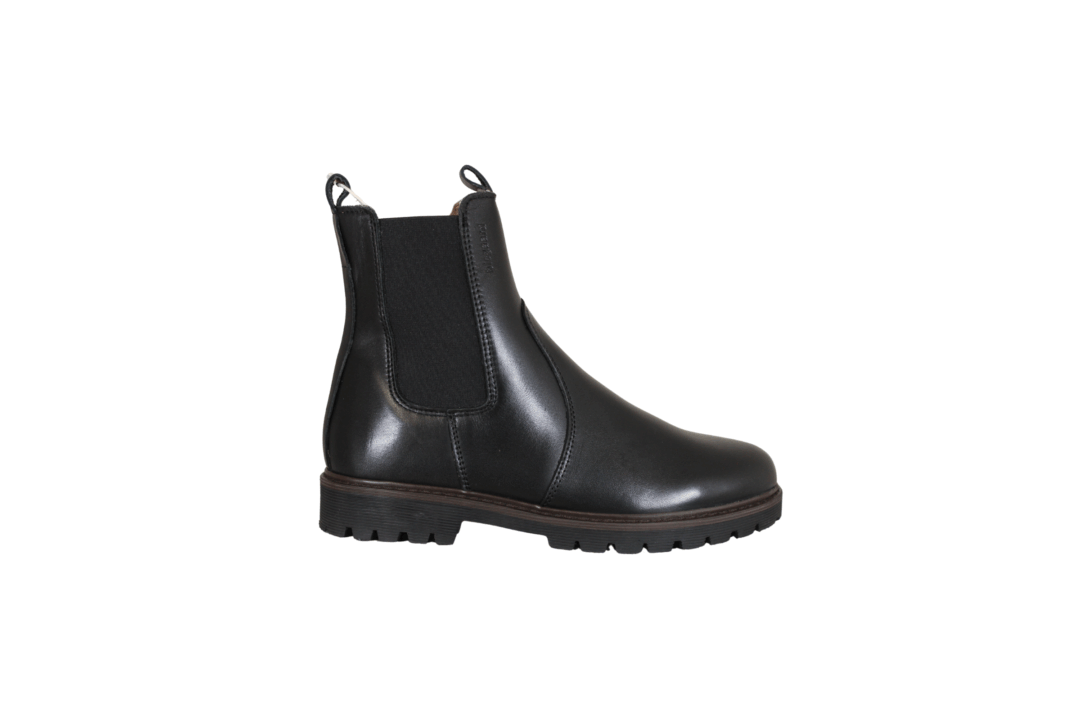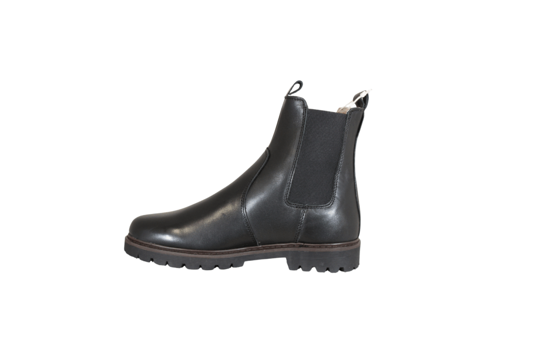 BISGAARD BOOT 51919.888.1000 BLACK (562-0944). Sort klassisk chelsea boot med elastik i begge sider, så den er nem at trække ned i. Støvlen er lavet i skind udvendig. Foringen er uldfoer, som også er polstret på indlægssålen. Slidsålen er gummi med godt mønster, så den er god til vinter vejret.