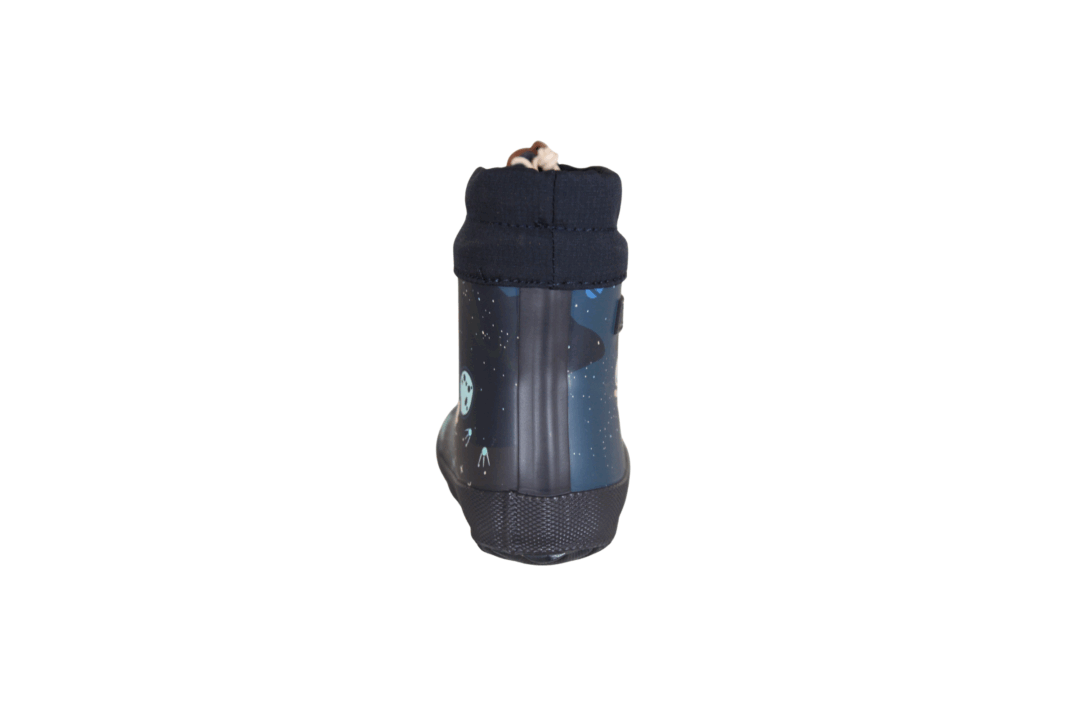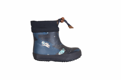 BISGAARD THERMO BABY SPACE EXPLORER 92012.888.9029 (861-9029). Mørkeblå termostøvle med rum universet til små børn i natur gummi. Indvendig er støvlen foret med uld, hvilket giver en lækker blødhed og god varme. Rundt i kantbåndet er der en snøre, som kan snøres til. God til de kolde vinterdage i sjap.