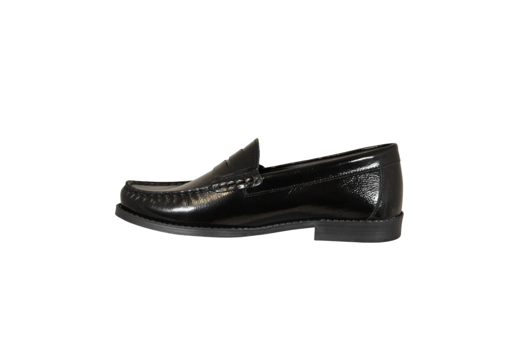 CASHOTT 61252542 CASROBERTA LOAFER NAPPA LAK (033-564). Klassisk loafers fra CASHOTT i en flot sort lak. Skoen er ret enkelt med mocassin syning rundt i snuden. Materialet er skind udvendig, og vegansk materiale indeni. Ydersålen er lavet i gummi.