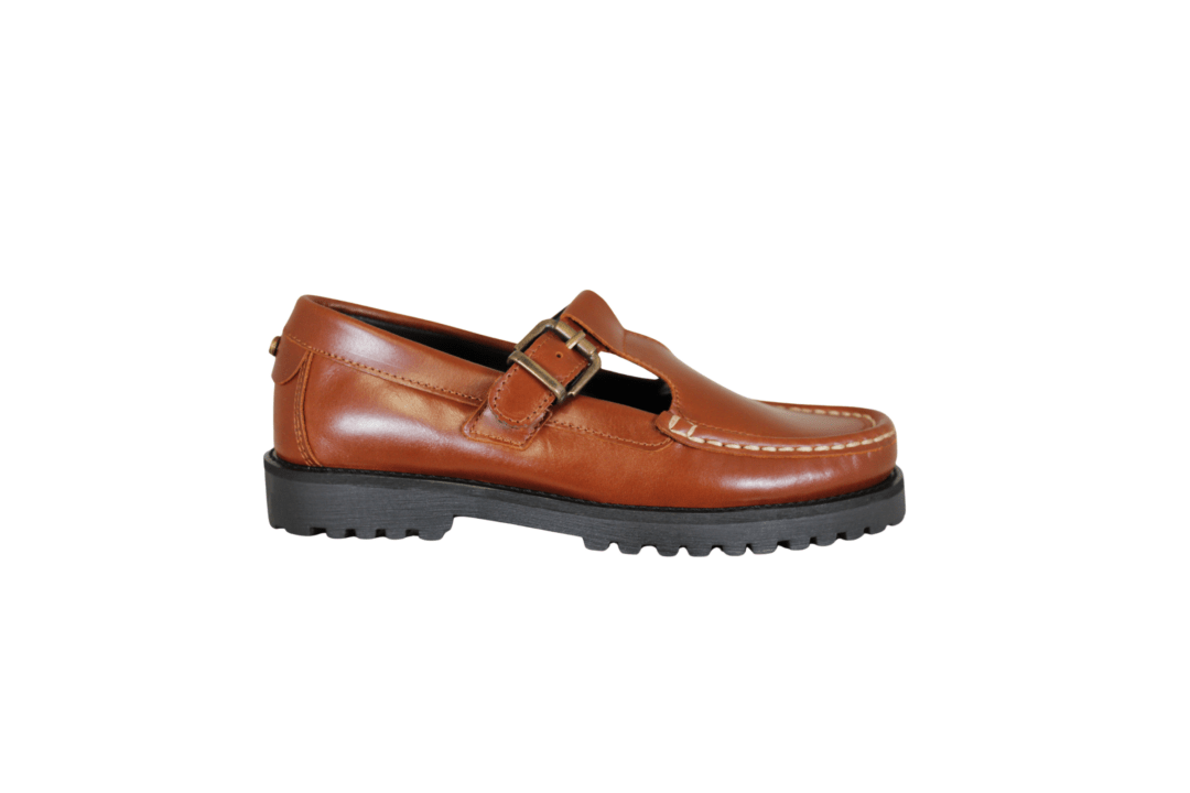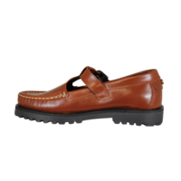 CASHOTT CASLENA MARY JANE 61252197 COGNAC (032-823). Cognac loafers med smart kraftig sål. Skoen har en rem hen over vristen, der kan justeres med en spænde. Skoen er lavet i skind udvendig, og foret med vegansk indvendig. Rundt i snuden er der en mocassin syning.