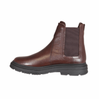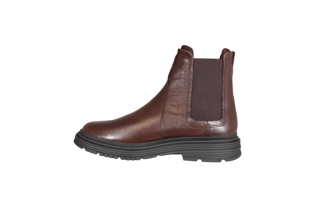 CLARKS BADBURY EASY 26183258 (541-0575). Flot brun chelsea skind støvle med brun elastik i siden. Inder sålerne er med Contour cusion (stødabsorberende såler, som kan tages ud af støvlen. Sort ydersål. Pæn og enkelt støvle, der passer til det meste i garderoben.