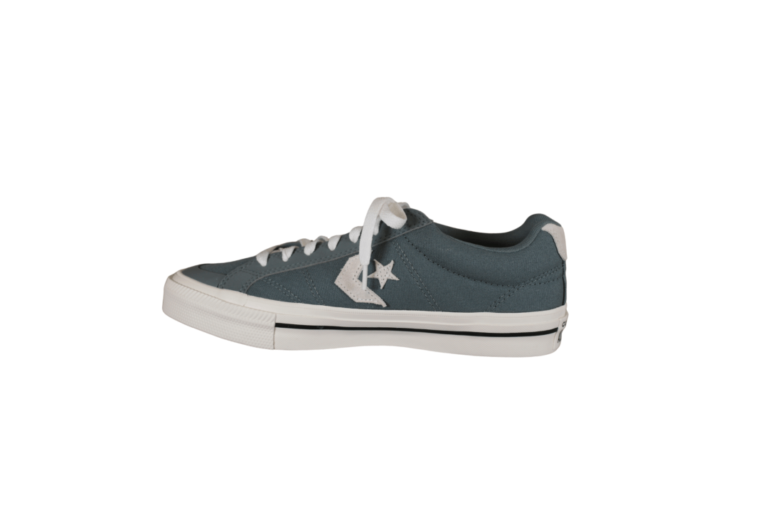 CONVERSE A16018C MINERAL BREW (741-3736). Flot støvet blå lærredssko. Indersålerne er er polstret, så skoene er bløde at gå med. Ydersålerne er Converse´s såler hvid med den sorte streg og Converse logo på hælen, en gummi forstækning på tåen. Logoet er ligeledes på sidderne og på pløjsen. Lange hvide snørebånd. En god sko til daglig brug, passeer til det meste i gaderoben.