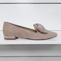 COPENHAGEN SHOES BY JOSEFINE VALENTIN BE GOOD CSJV3028 (033-513). Flot skind beige farvet flad loafers med en sløjfe på forbladet. Indevendig såler er polstret, så skoene er bløde at gå med, udvendige såler er glatte såler en tynd tunit sål. En sko der passer til det meste i gaderoben, både til daglig brug eller til festerne.