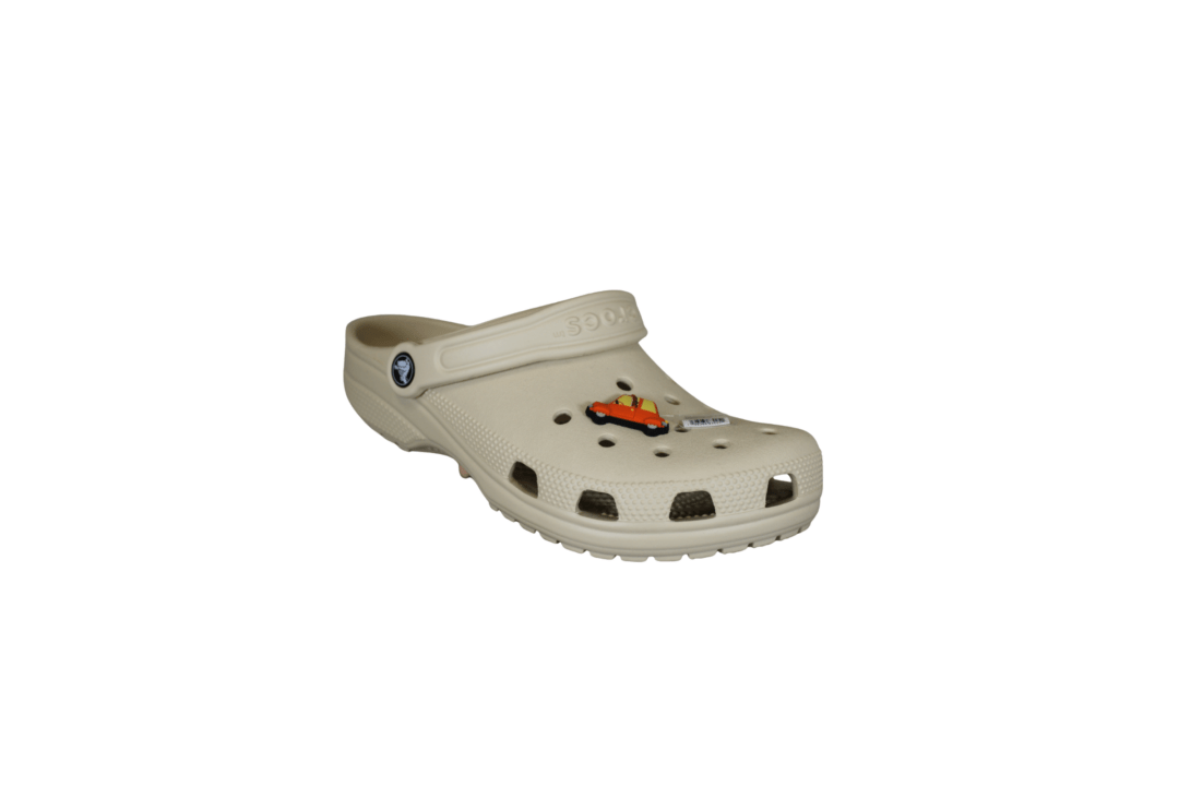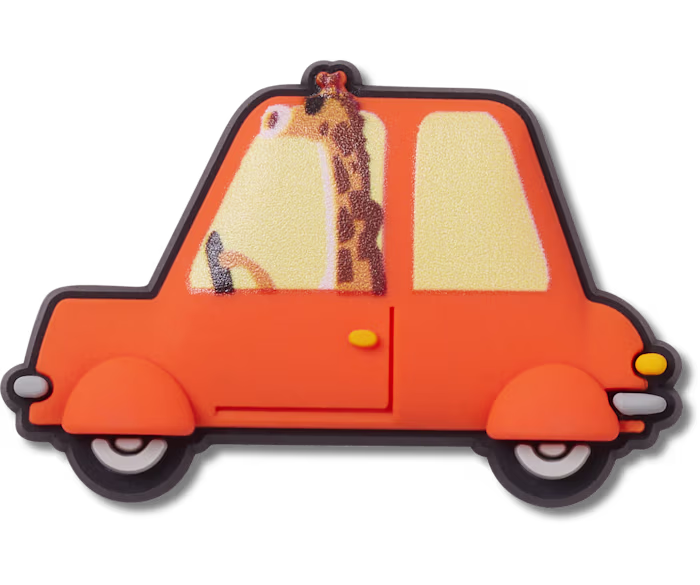 CROCS 10014160 GIRAFFE DRIVING A CAR (098-615). Charms der er formet, som en orange bil med en giraf indeni. Lavet i gummi.