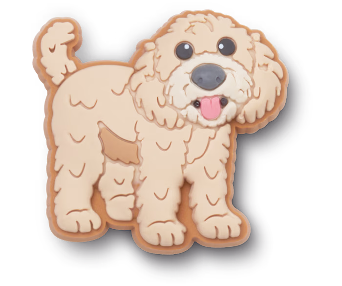 CROCS 10014890 GOLDEN DODDLE PUPPY (098-622). Charms der er formet, som gylden farvet “DOODLE” hund. Lavet i gummi.