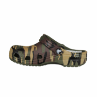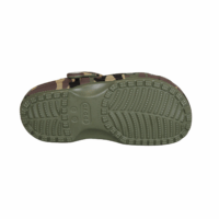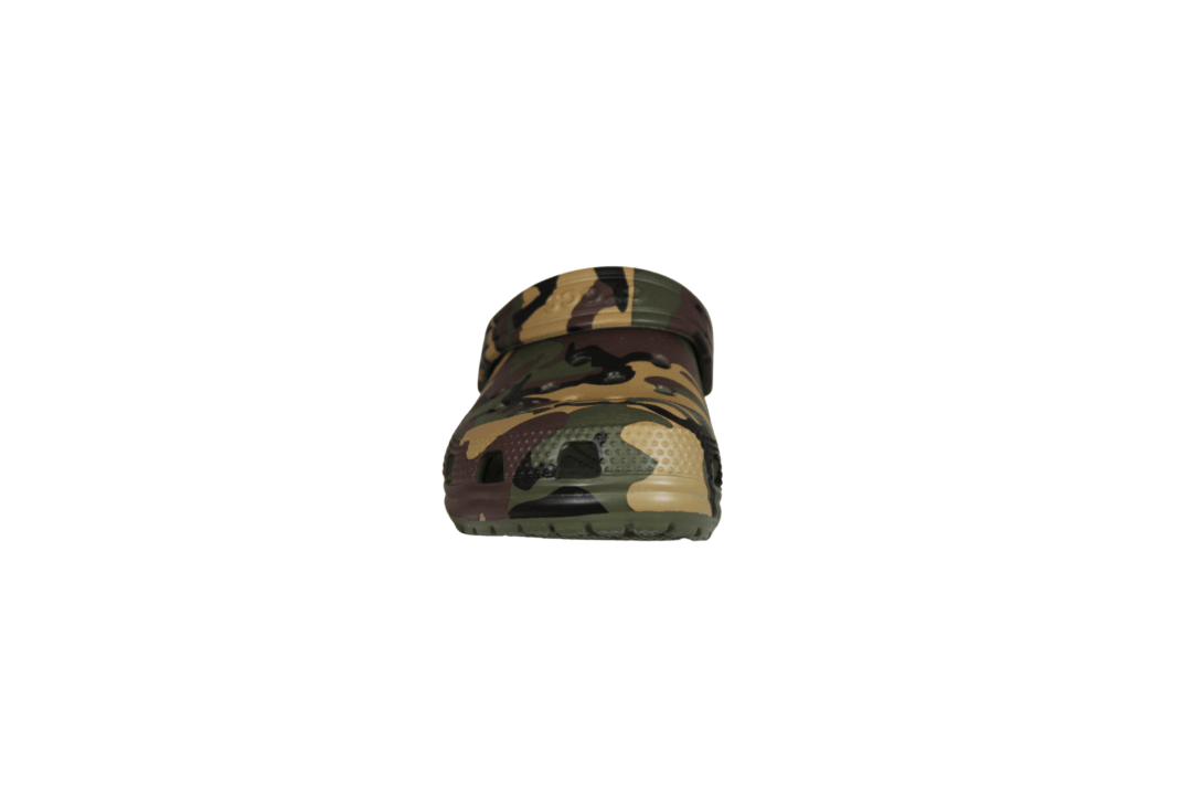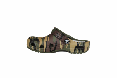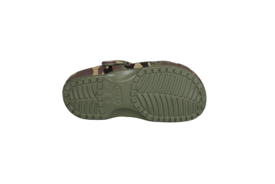 CROCS 211879-3TC CLASSIC CAMOUFLAGE CLOG (088-359). Crocs til børn med camouflage print. Træskoen er lavet i ren gummi, som er blød at gå på. Hen over vristen sidder en rem, der også kan sættes bag hælen. Skoen kan sagtens tåle vand.