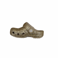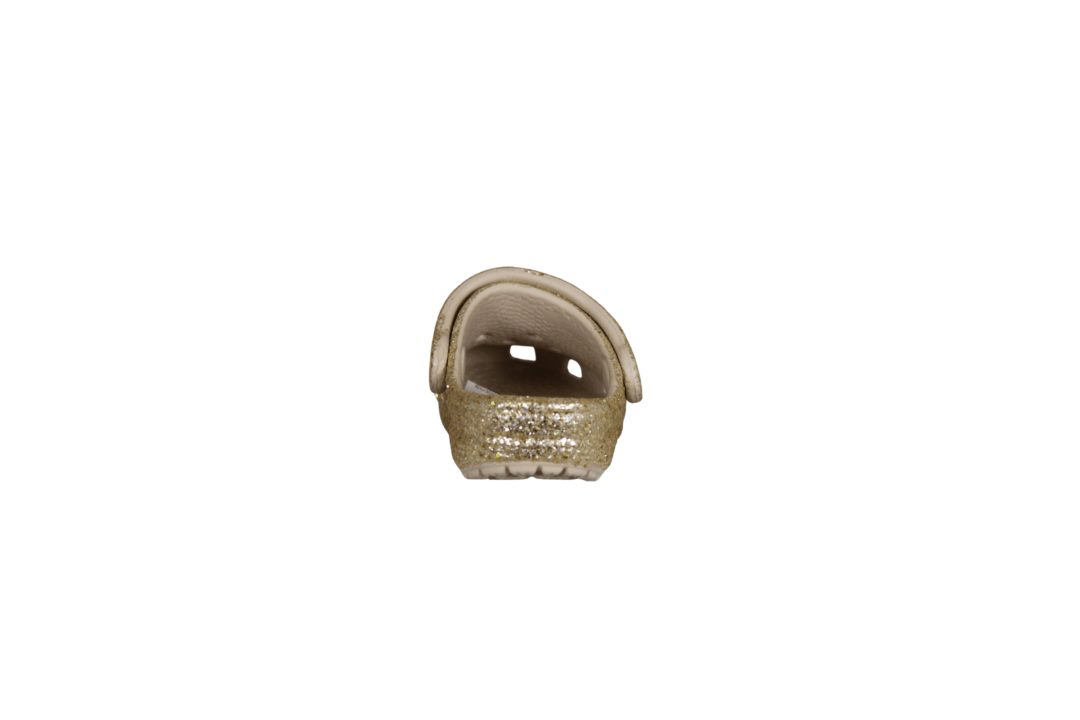 Den helt klassiske CROCS med guld glimmer til de små piger, remmen kan tages tilbage og bruges som bagrem. Hurtig og nem at smutte i, når det skal gå stærkt eller gode ved stranden og legepladsen.