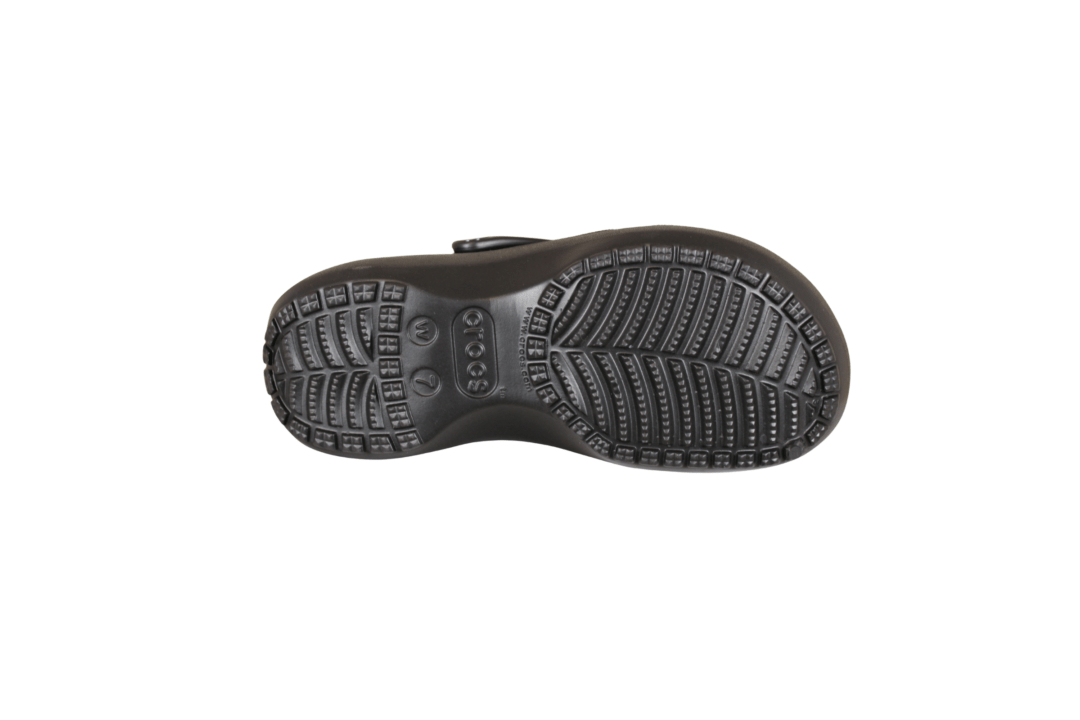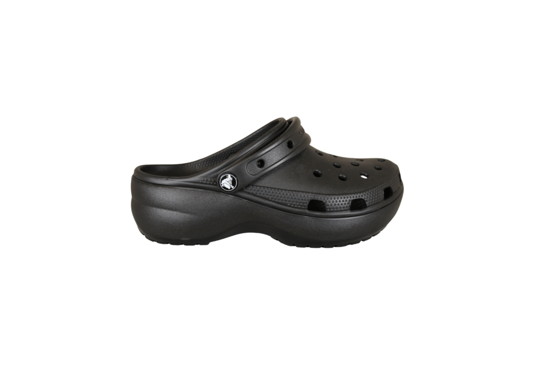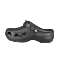 CROCS PLATFORM CLOG 206750-001 SORT (057-764). Klassisk sort farvet crocs med plateau sål. Skoen er lavet i gummi, hvilket gør den kan bruges både i haven, vandet og som hjemmesko. Sålen er god blød at gå på, da det giver lidt efter.