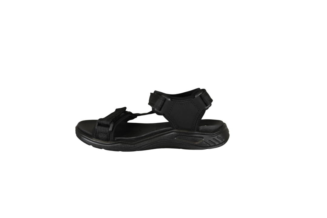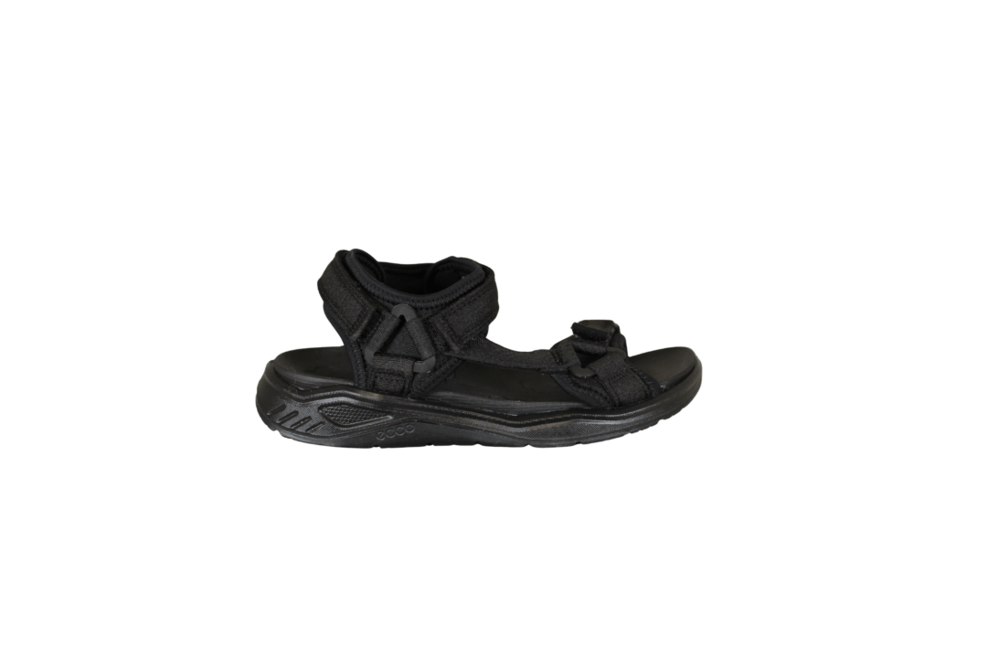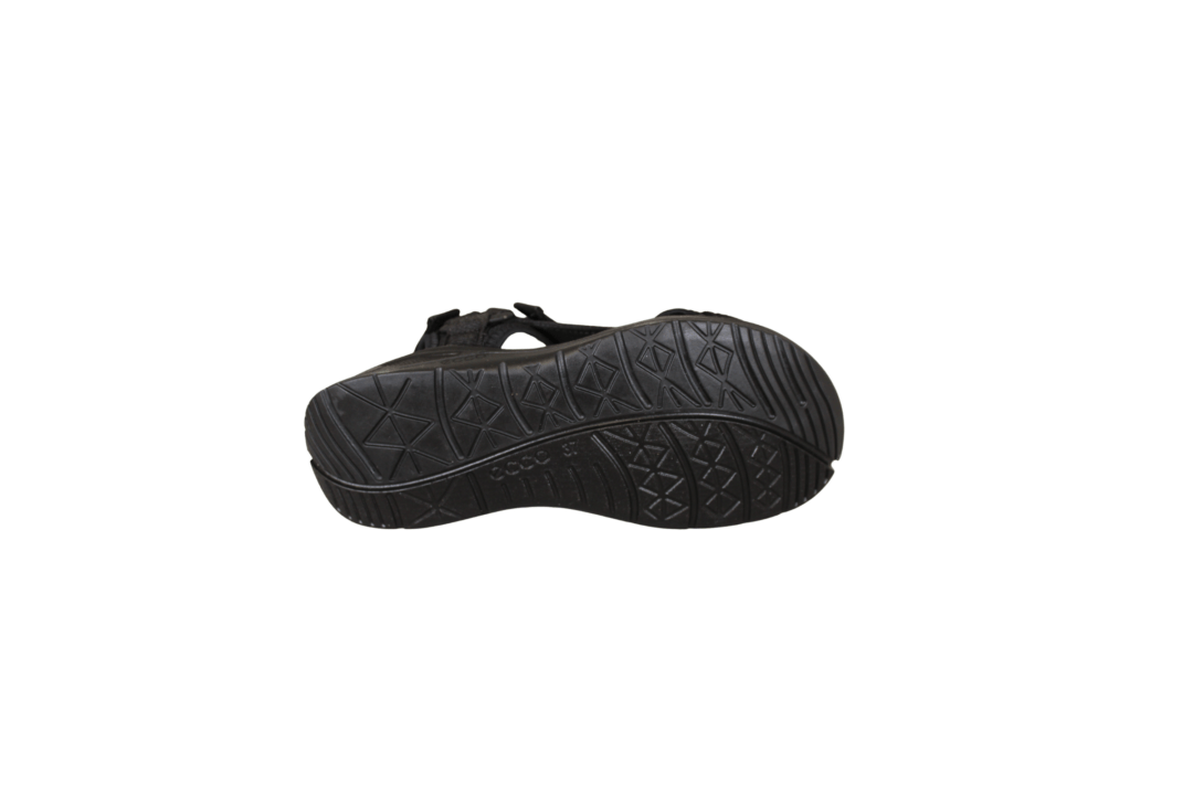 ECCO 710673-00101 X-TRINSIC K SANDAL TEX (425-1271). Sort travesandal fra ECCO med 3 justerbar velcroremme – ved forfod, vrist og hælen. Sålen er god fleksibel. Indvendig sål er lavet i PU materiale, så den kan tåle vand. Helt sort klassisk sandal.