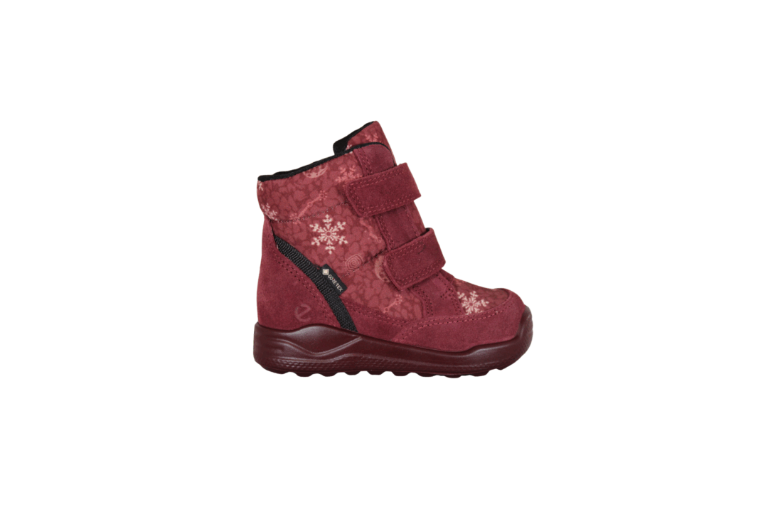 ECCO 764801-61413 URBAN MINI (561-0345). Klassisk vinterstøvle i ruby til piger. Vinterstøvlen er forret med tekstil nede i hele støvlen, samt på indlægssålen (kan også tages op). Støvlen har GORE-TEX, hvilket betyder den er 100% vandtæt. Yder materialet er en blanding af skind og tekstil, hvor ude i snuden og hælen er det skind som gør den lidt mere slidstærk. De to velcrobånd gør den kan justeres godt til foden.