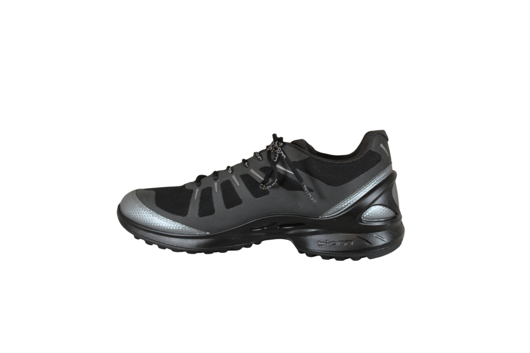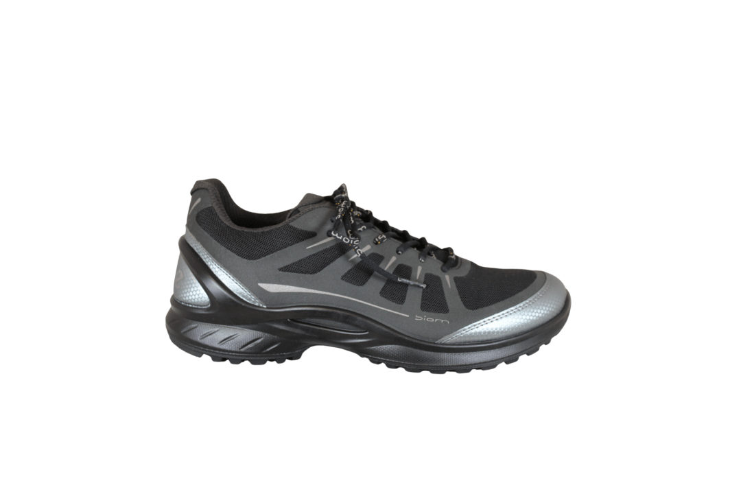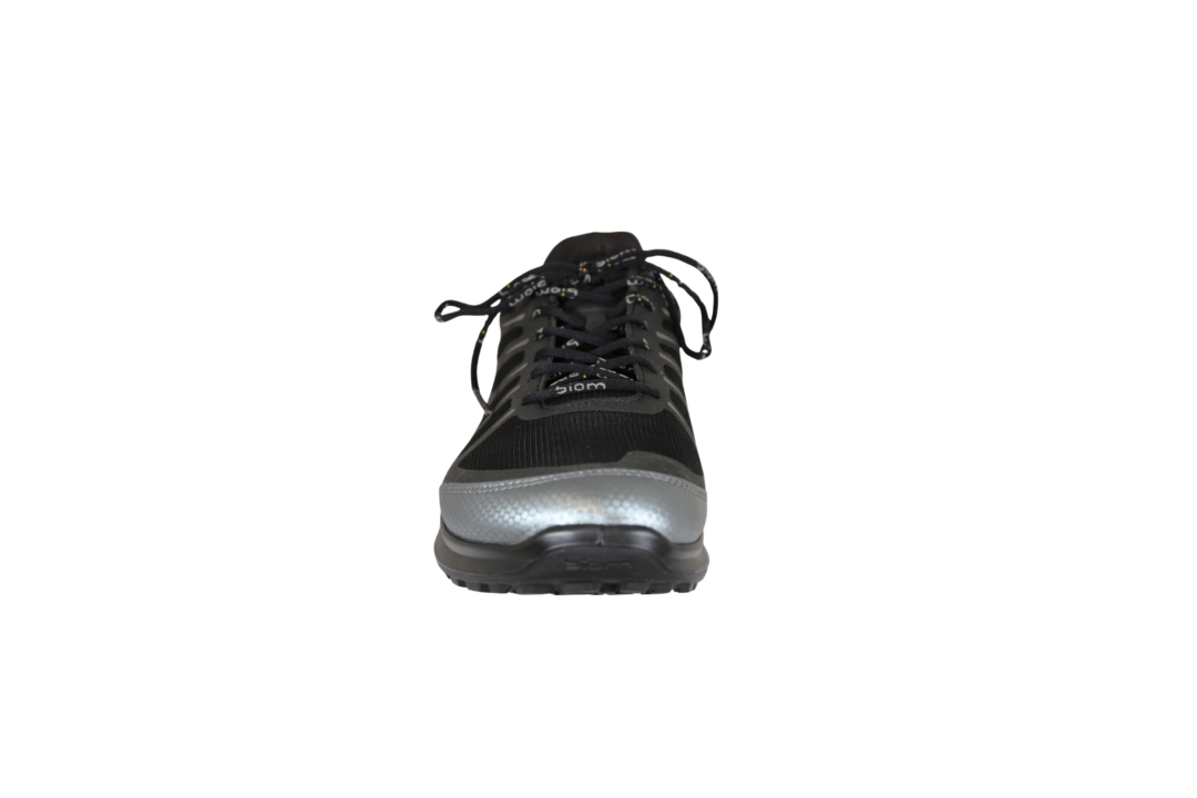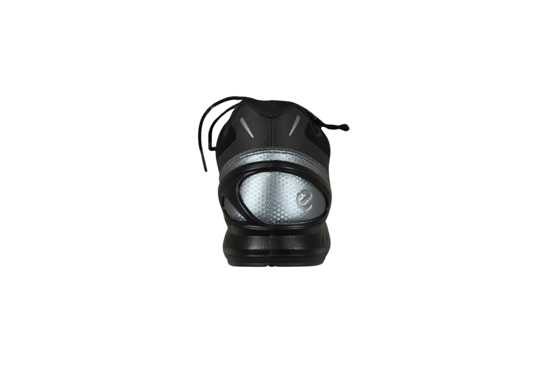ECCO BIOM ENERGI M 850834-00101 SORT (163-0615). Sort praktisk hverdags sko i sort tekstil med sølv detaljer rundt på skoen. Slidsålen er lavet i gummi med godt mønster. Sålen er den gode BIOM sål – letvægts sål med god støtte fra hælkappen.