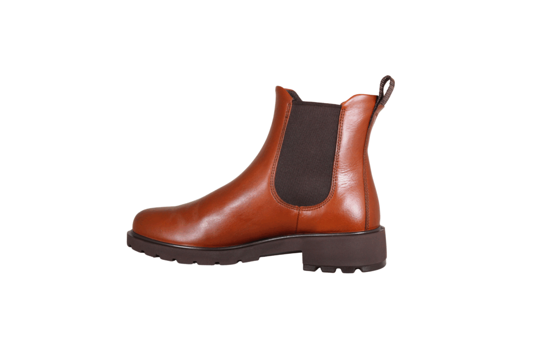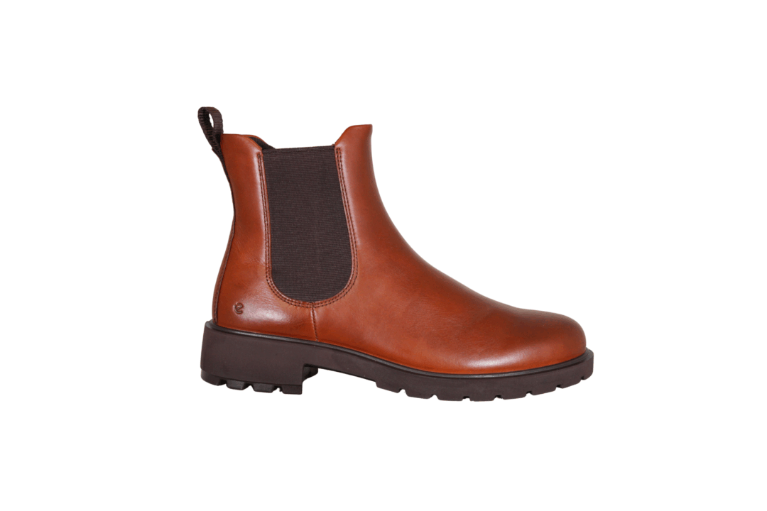 Klassik fin chelsea boot fra Ecco, i blødt brunt skind. Støvlen har elastik på begge sider, så den er lettere at tage på.