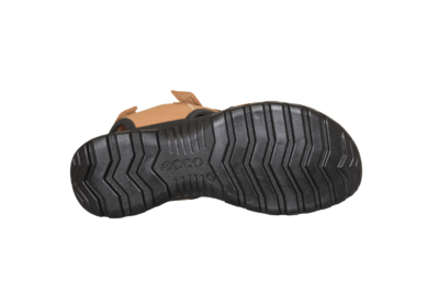 ECCO ONROADS W 221203-02291 (041-737). Flot brun, cashmere travesandal med 3 steder, hvor den kan reguleres med velcro bånd, så den sidder godt på foden. En meget let og fleksibel sandal i skind, god til daglig brug eller til traveturene.