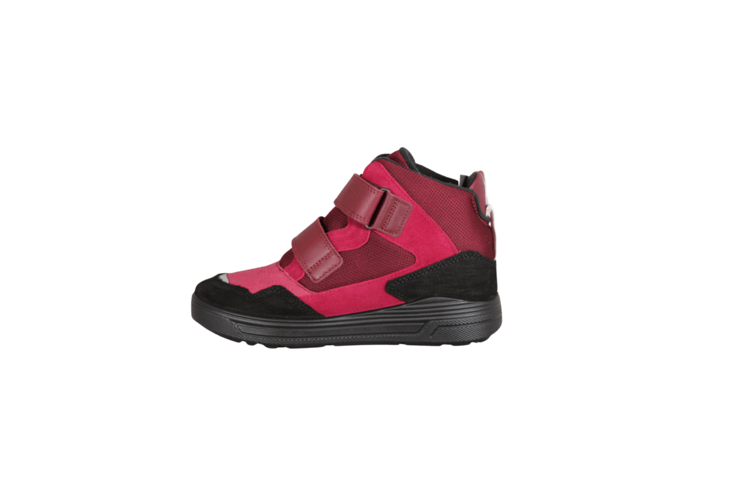 ECCO URBAN SNOW K MID 722403-61354 (083-504). God vinterstøvle til de store piger. Støvlen er en blanding af mørk rød tekstil og ruskind udvendig, samtidig med den er foret med tekstil indvendig. Der er 2 velcrobånd over vristen, så den kan justeres godt til foden. Støvlen er vandtæt, så perfekt til de kolde vinterdage.