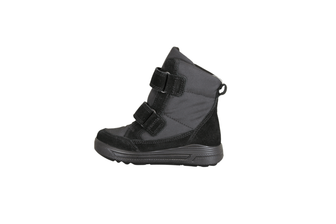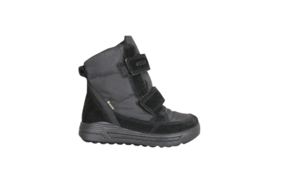 Klassisk sort vinterstøvle både til drenge og piger. Vinterstøvlen er forret med tekstil nede i hele støvlen, samt på indlægssålen (kan også tages op). Støvlen har GORE-TEX, hvilket betyder den er 100% vandtæt. Yder materialet er en blanding af skind og tekstil, hvor ude i snuden og hælen er det skind som gør den lidt mere slidstærk. De to velcrobånd gør den kan justeres godt til foden.