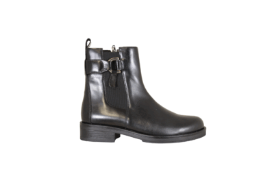 Smart klassik sort skindstøvle fra Gabor. Støvlen har en lynlås på indvendig side, og en elastik på ydersiden. Støvlen er foret med sort tekstil. Slidsålen er lavet i sort gummi så man står godt fast. Hælen har en højde på 3,5cm.