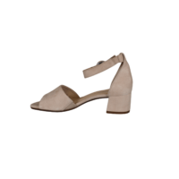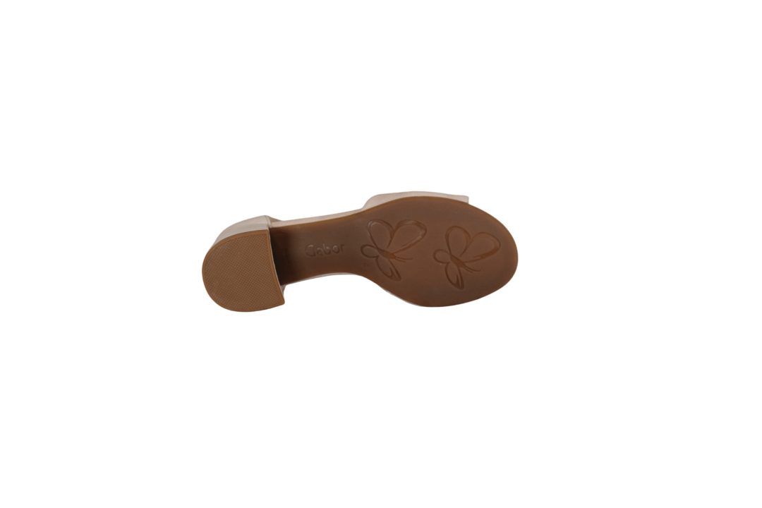 Flot lys Gabor skind sandal på 4 cm hæl, med rem over vristen, under spændet er der et lille velcro rem, så den er nem at komme i. Inder sålerne er polstret, så de er bløde at gå med. En rigtig god sandal til mange formål, både til daglig og til festerne.
