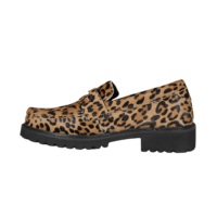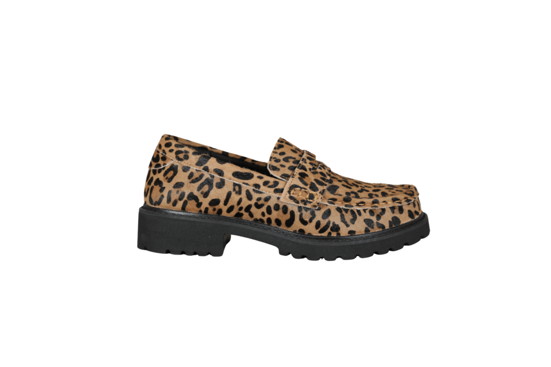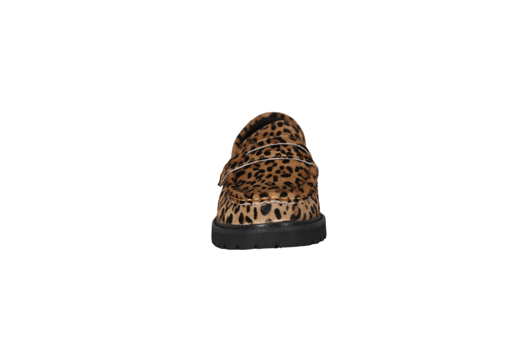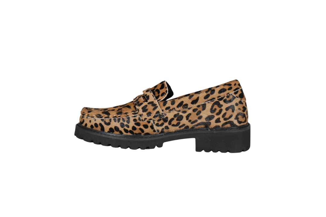 GREEN COMFORT BERLIN 229009 Q82 33 SAND (033-562). Smart loafers i leopard print med hår. Over vristen er der en leopard rem som falder godt ind med skoen – i slutningen af remmen er der vekcrobånd der kan justeres til foden. Indvendig er den foret med sort tekstil. Ude i snuden er den mocasin syning. Slidsålen er en sort gummi sål, med en hælhøjde på 3,5 cm.