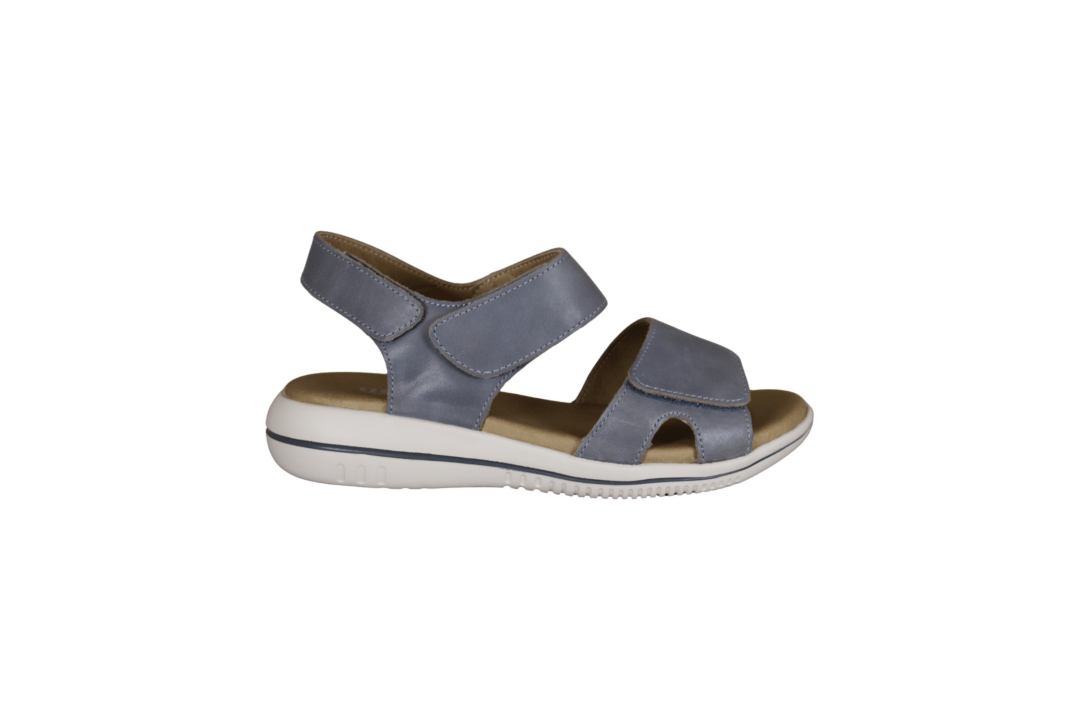 GREEN COMFORT LEAF LIGHT BLUE 422004 Q30 (425-1239). Flot enkelt lys blå skind sandal i modellen Leaf. sandalen kan reguleres 3 steder, ved forfoden, i hælen samt over vristen. Indersålerne er med Engery Sole på 4,5 mm stødabsorbering i sålerne, samt en let ydersål i gummi. Det gør sandalen rigtig god stødabsorberne. En let og fleksibel sandal, der er god til daglig brug eller til festerne.
