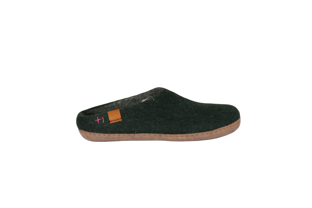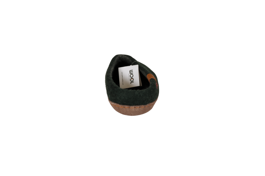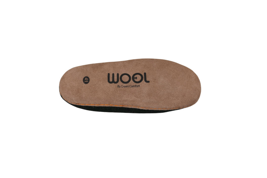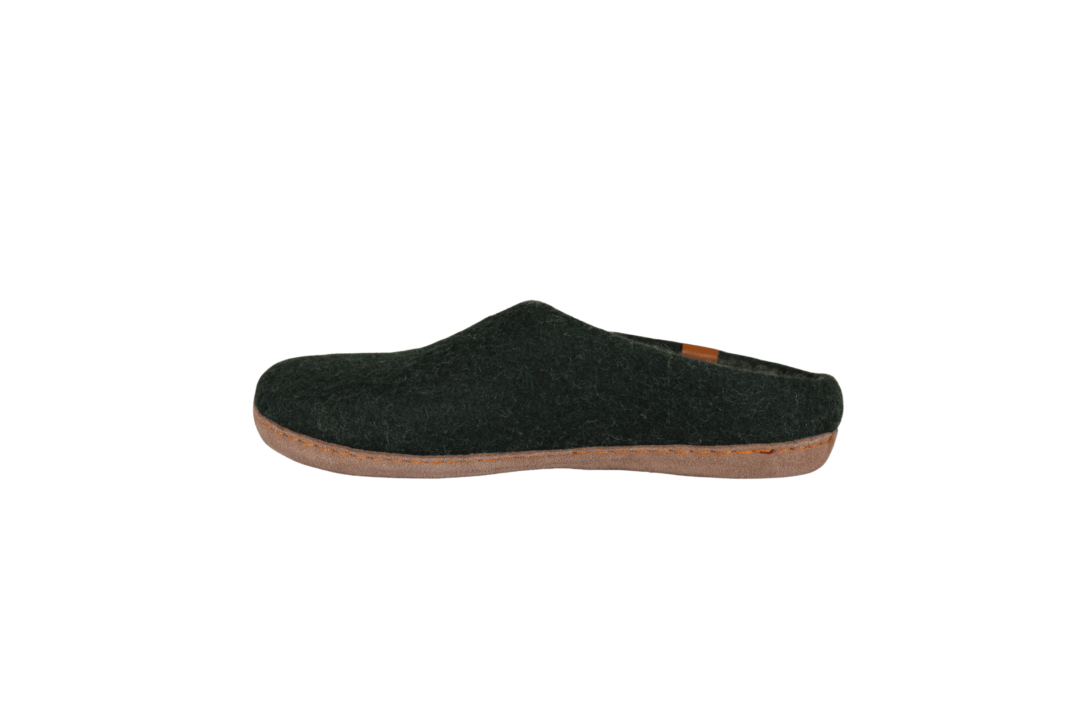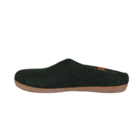 GREEN COMFORT WOOL MAKALU 821001 Q70 042 OLIVE (057-763). Varm og blød hjemmesko med lille kant, så den sidder bedre fast på foden. Ulden er håndfiltet i Nepal – sker uden kemikalier. Indvendig er der en 4,5 mm EnergySole mellem ulden og sålen. Sålen er lavet i skind (nubuck), hvilken gør den blød og fleksibel.