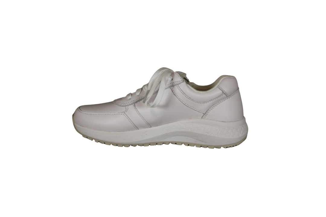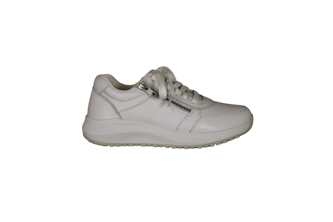 GREEN COMFORT ZIGGA 225081Q37(245-0991). Hvid skind sneakers med snørebånd, samt lynlås. Skoen er lavet i skind, dvs de er mere åndbare. Inder sålerne kan tages ud af skoen. Inder sålerne er med MEMORY formstøbt sål, samt meget stødabsorberende. En meget let og fleksibel sko.