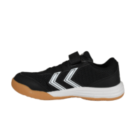 HUMMEL MULTIPLAY FLEX VC JR 224853-2114 (065-805). God inddøres kondisko, som er nem at komme i, med et velcrorem over og elastik snørebånd. Indersålerne er polstret, så skoene er bløde at gå med. Ydersålerne er lyse, så de kan fungere i en hal, uden at lave striber.
