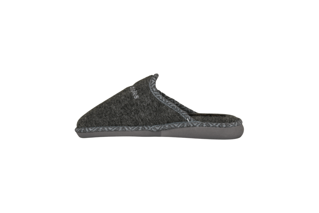 HUSH PUPPIES HPB60004 GREY LOLA (641-0560). Lys grå meget let hjemmesko, med lette bløde skum ydersåler. Over stykket er i lys grå filt og har mønster rundt i kanten. Indvendig er der blød foer, hvilket er lækkert for bare tæer. En meget let og fleksibel hjemmesko.