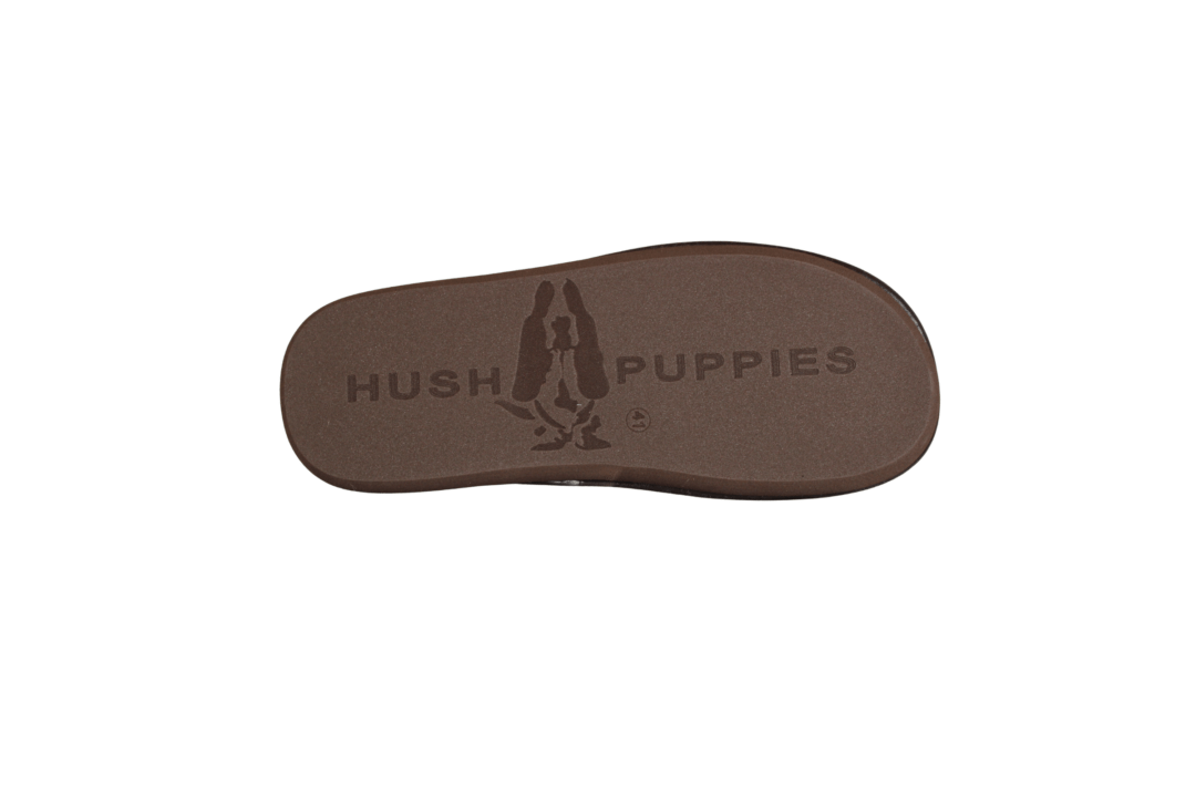 HUSH PUPPIES HPB60139 (027-499). Mørk brun meget let hjemmesko med lette skum såler, så du kan smutte ud. Over stykket er i mørke grå fløjl og foret i sålerne er i fløjl og filt. En meget let og fleksibel hjemmesko.