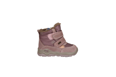 IMAC 884308 70057/008 GREY/PINK (561-0344). Let og fleksibel vinterstøvle til de små i piger i lyserød med snefnug og glimmer. Støvlen er foret med tekstil, og udvendig er det vegansk og tekstil materiale. Modellen har TEX, hvilket betyder den er kraftig vandafvisende. Kan justeres godt til foden med 2 velcrobånd.