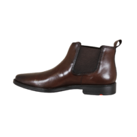 LLOYD 25-514-07 CORE 315 (541-0583). Chelseaboot støvle i en flot mørkebrun farve, og bred elastik i begge sider. I snuden af støvlen er skindet mere mørkt. Støvlen er i skind udvendig, og foret med vegansk foer. Slidsålen er lavet i gummi, med den velkendte røde striber på hælen.
