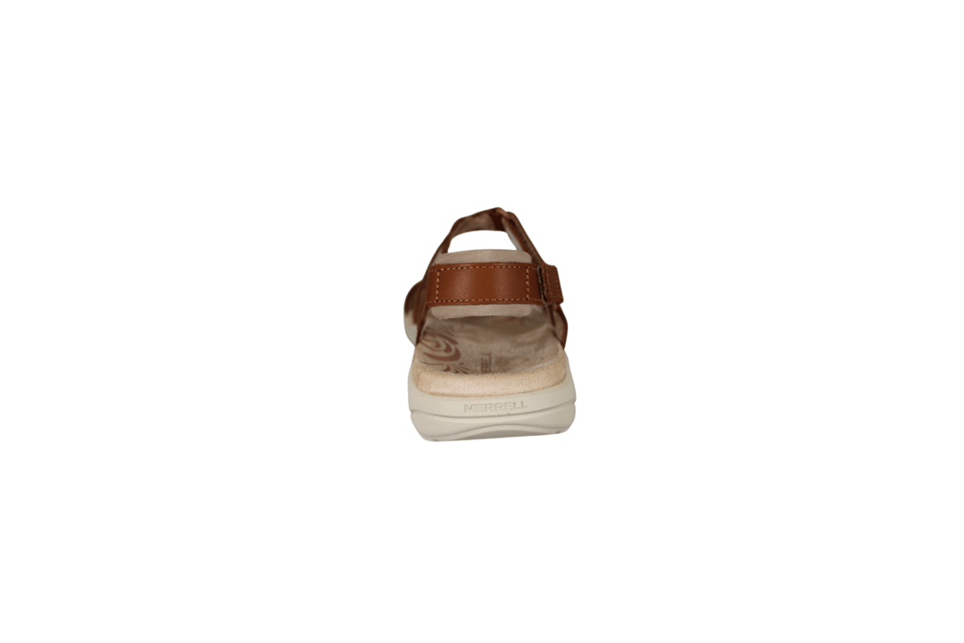 MERRELL J007798 HAZEL (425-1272). Brun sandal med god komfort og støtte. Sandalen er lavet i skind (nubuck) udvendig, og foret med tekstil indvendig. Sandalen kan justeres på ydersiden og bagremmen med en lille velcrobånd. Sålen er lavet i PU, som er god blød men stadig med stabilitet.