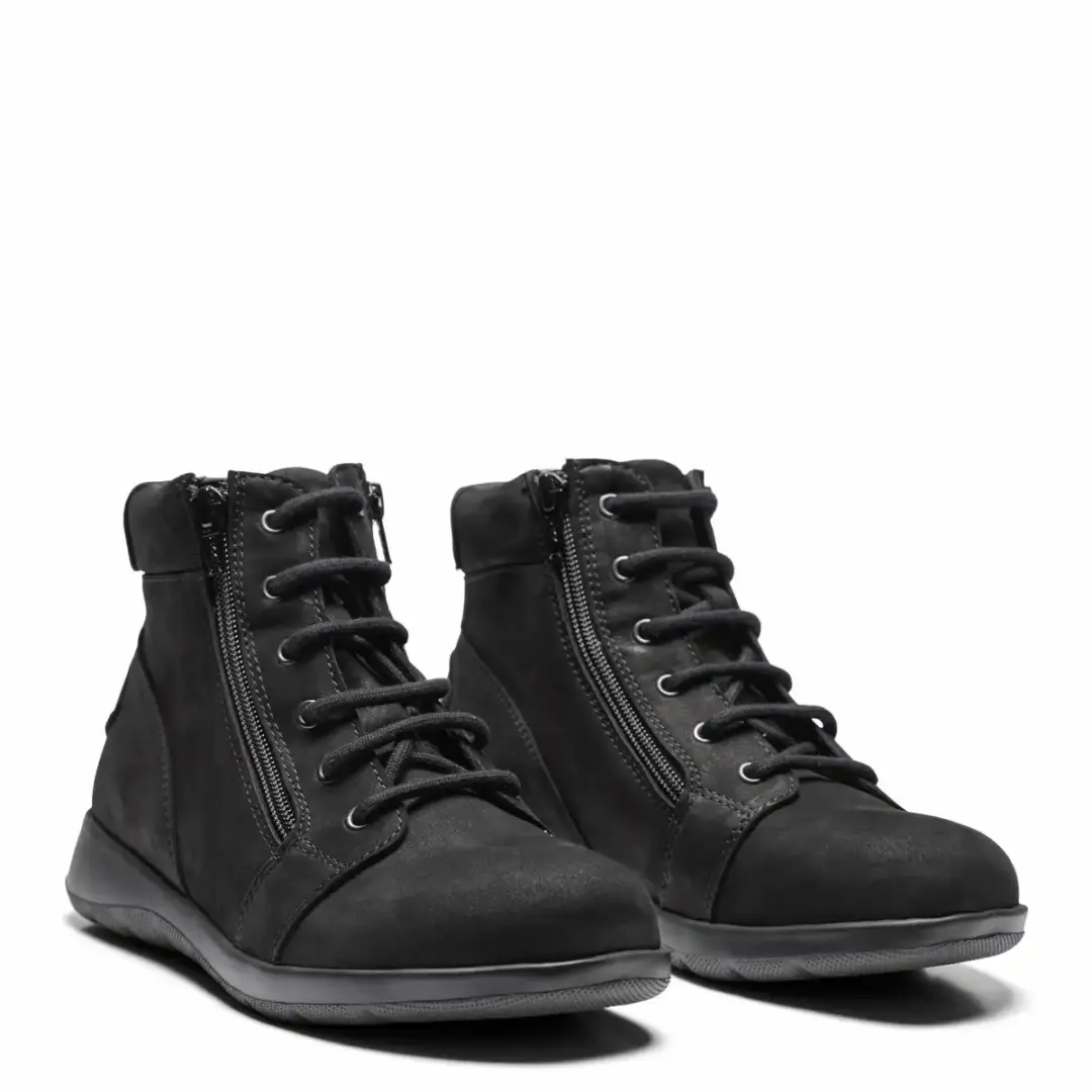 NEW FEET 242-25-1510 SORT (525-1117). Sort støvlet fra New Feet med snørebånd op af vristen, og 1 lynlås i hver side – nem at træde ned i. Støvlen er nubuck udvendig, og foret med Picos, som er et varmt foer. Støvlen har en vandafvisende TEX-membran, som holder tæerne varme og tørre på en kold vinterdag. Indvendig har New Feet laver tilbagetrukne syninger, der gør at din fod ikke skulle generes af det. Indvendig sål er den populære 6 mm stødabsorberende sål.