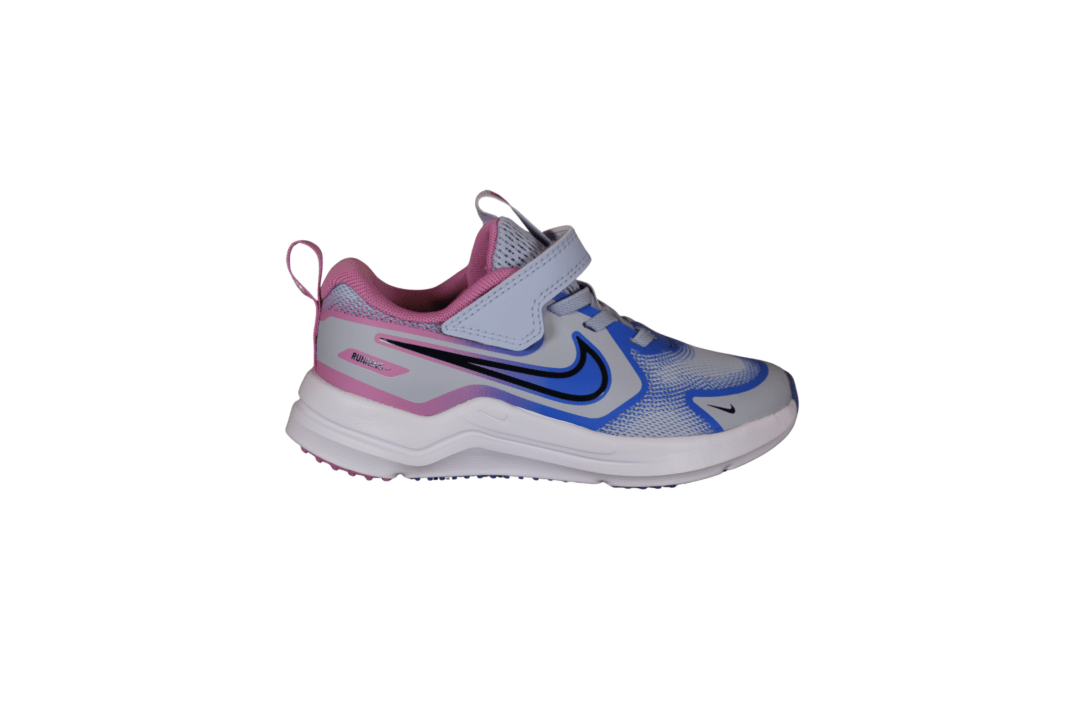 NIKE HM4400 011 COSMIC RUNNER PSV (741-3788). Let og fleksibel sneakers i blå og lilla nuancer. Skoen har et velcrobånd øverst, så den er nem for barnet selv at tage på. Materialet er tekstil både ind- og udvendigt. Under sålen er der farvet gummi, som gør de står bedre fast i den.