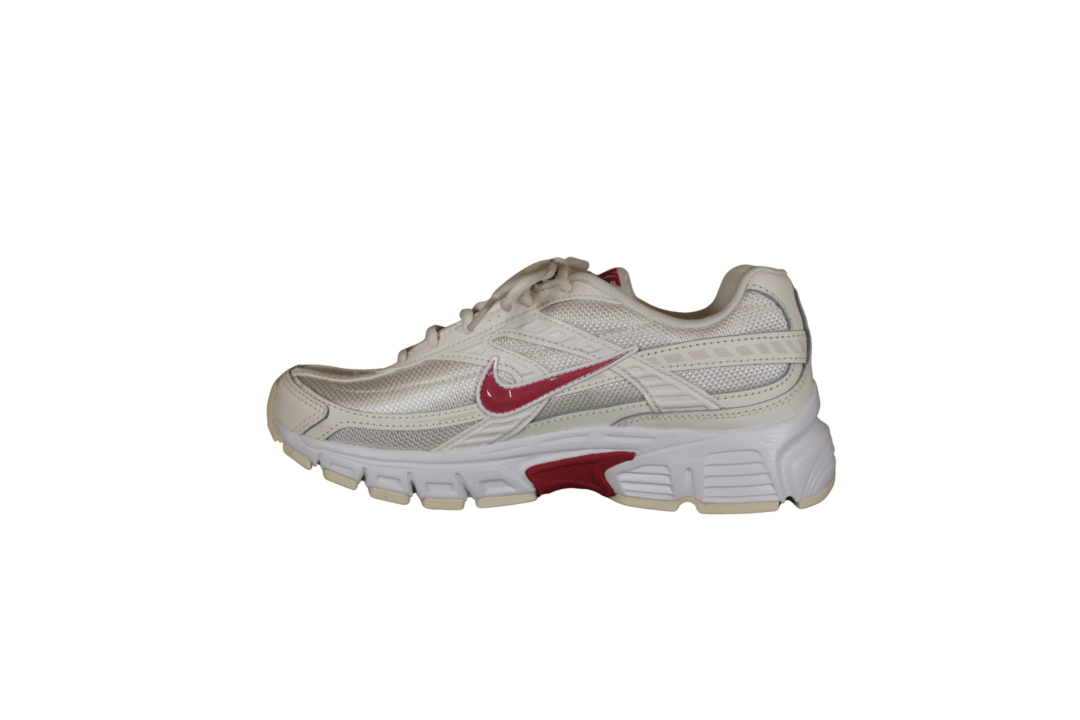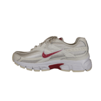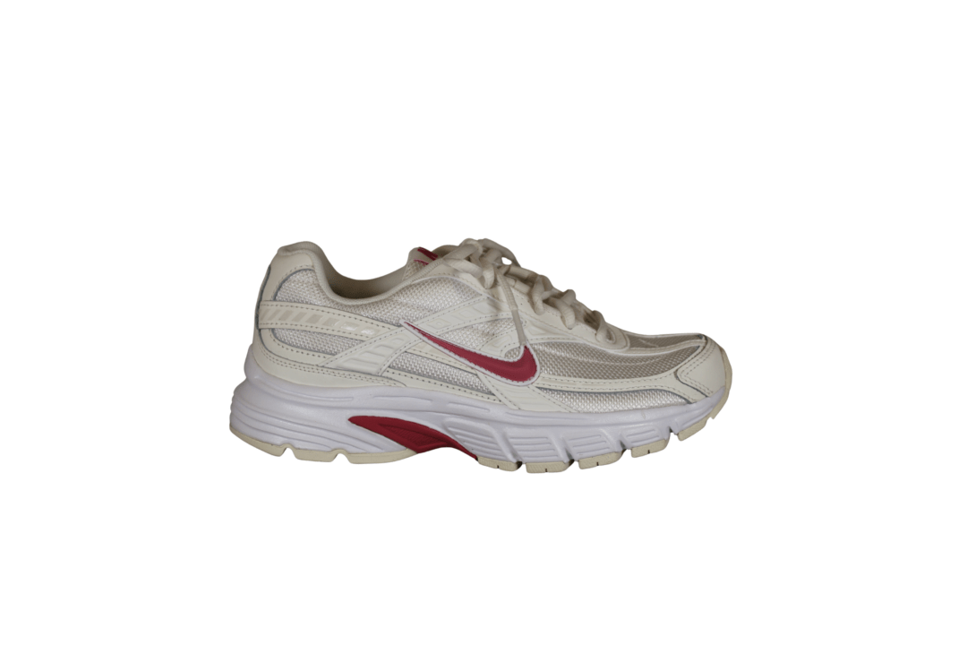 NIKE WMNS INIATOR 394053 104 HVID/ROSA (741-3663). Klassisk hvid sneakers med rosa detaljer, med en frisk nuance. På ydersiden er der et rosa NIKE logo. Skoen er lavet i tekstil og skind udvendig. Det indvendige foer er hvid tekstil. Slidsålen er også beige farvet gummi, så man står bedre fast. Smart til et hvert outfit.