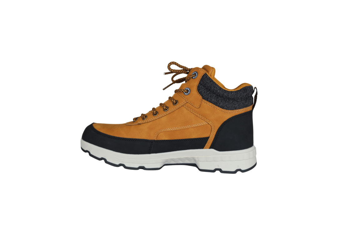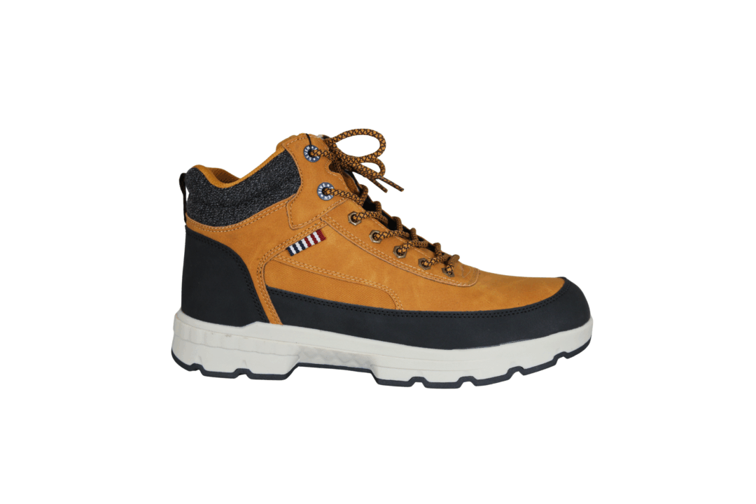 OUTDOOR 3011-94 YELLOW (022-420). Outdoor støvle til mænd eller større drenge, der ikke gider vinterstøvler. Støvlen er en vandrestøvle, da den har en god sål. Materiale er vegansk udvendig, og foret med tyk lag tekstil indvendig. Sålen er godt mønstret, så den er god til sne og længere gåture.