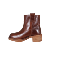 PAVEMENT 23482-1 JENNY VINTAGE (524-2992). Flot kort mørkebrun bikerstøvler med chunky hæl. Remme i begge sidder i skaftet. Indersålerne er i skind og er polstret, så støvlen er blød at gå med. Støvlen er lavet i skind, så den bedre kan forme sig efter din fod. En støvle, du kan bruge til det meste i gaderoben.