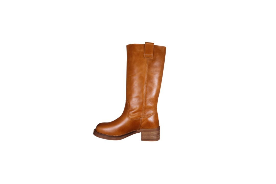 PAVEMENT ANNELI 23.339 717 TAN VINTAGE (524-2912). Rigtig flot elegant lysbrun langskaftet støvle med cowboy look og på en 3,5 cm hæl. Støvlen er firkantet i snuden med en syning rundt, som er rigtig smart til typen. Udvendig materiale er skind, og foret med tekstil indvendig. Dæksålen indvendig er i skind. Slidsålen er i gummi.